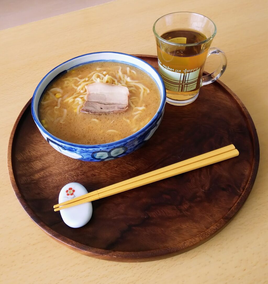 お昼になっておなかが空いたので、冷凍味噌ラーメンを食べます。