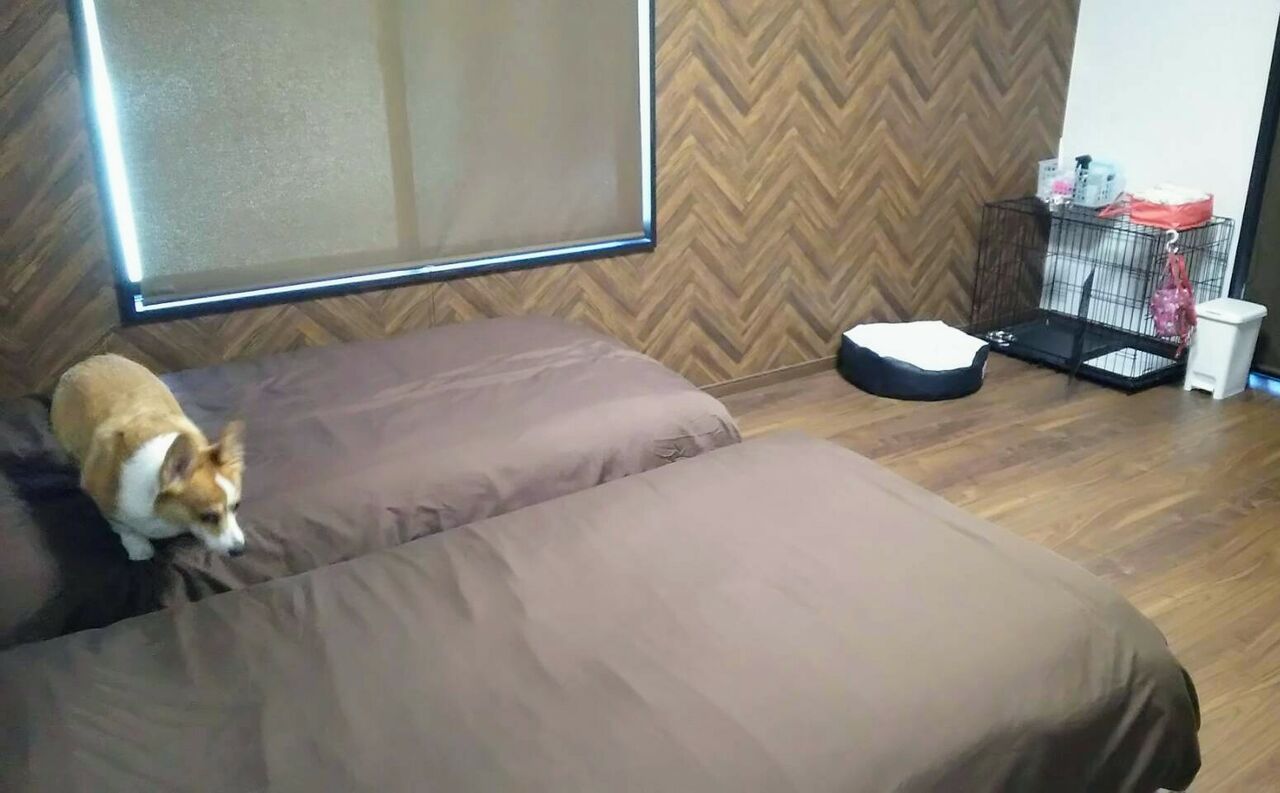 お部屋には犬用のベッドやグッズも置いてあって至れり尽くせり。