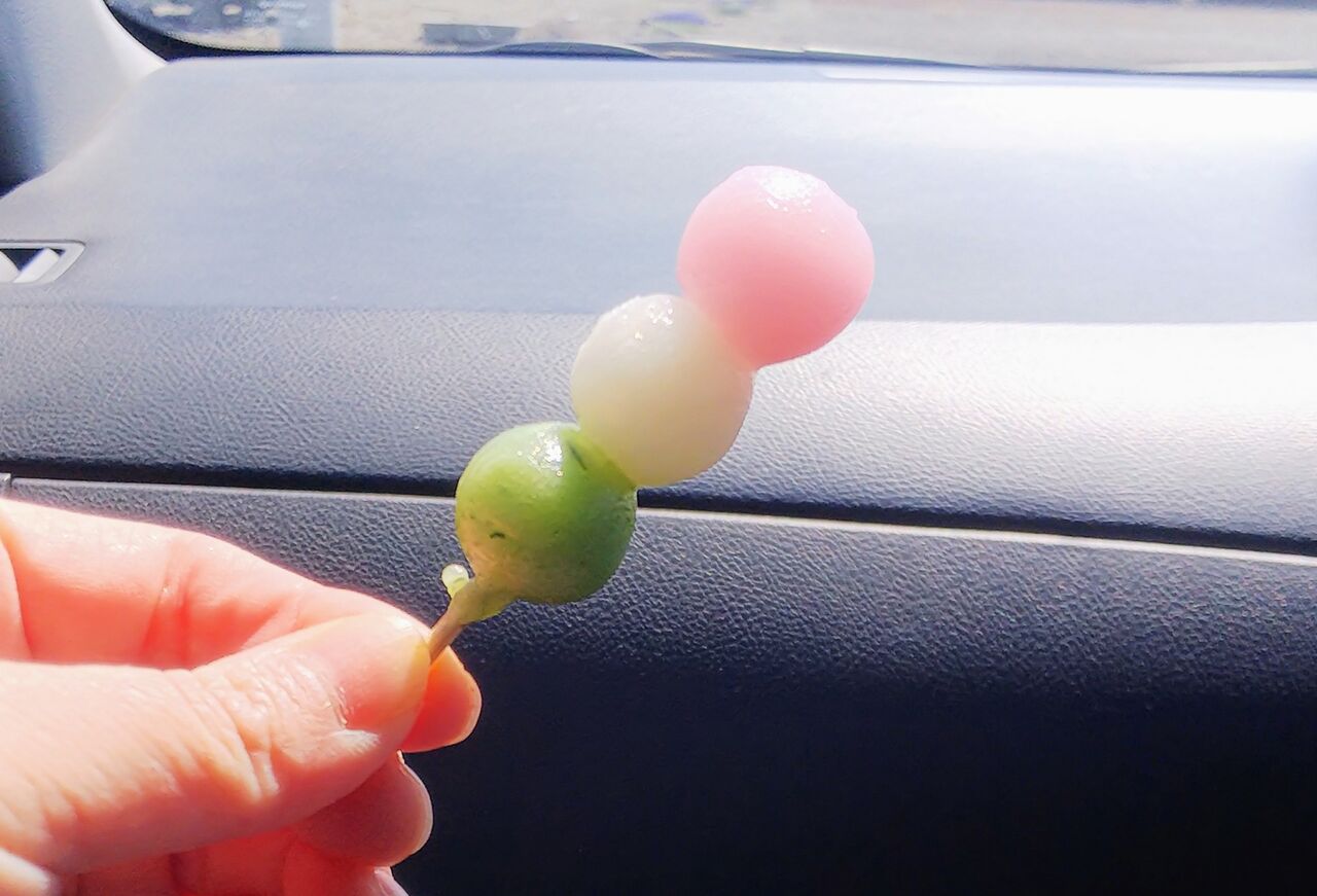 今日はドライブして、車窓から桜を見て、小さくてかわいいお団子を食べました。