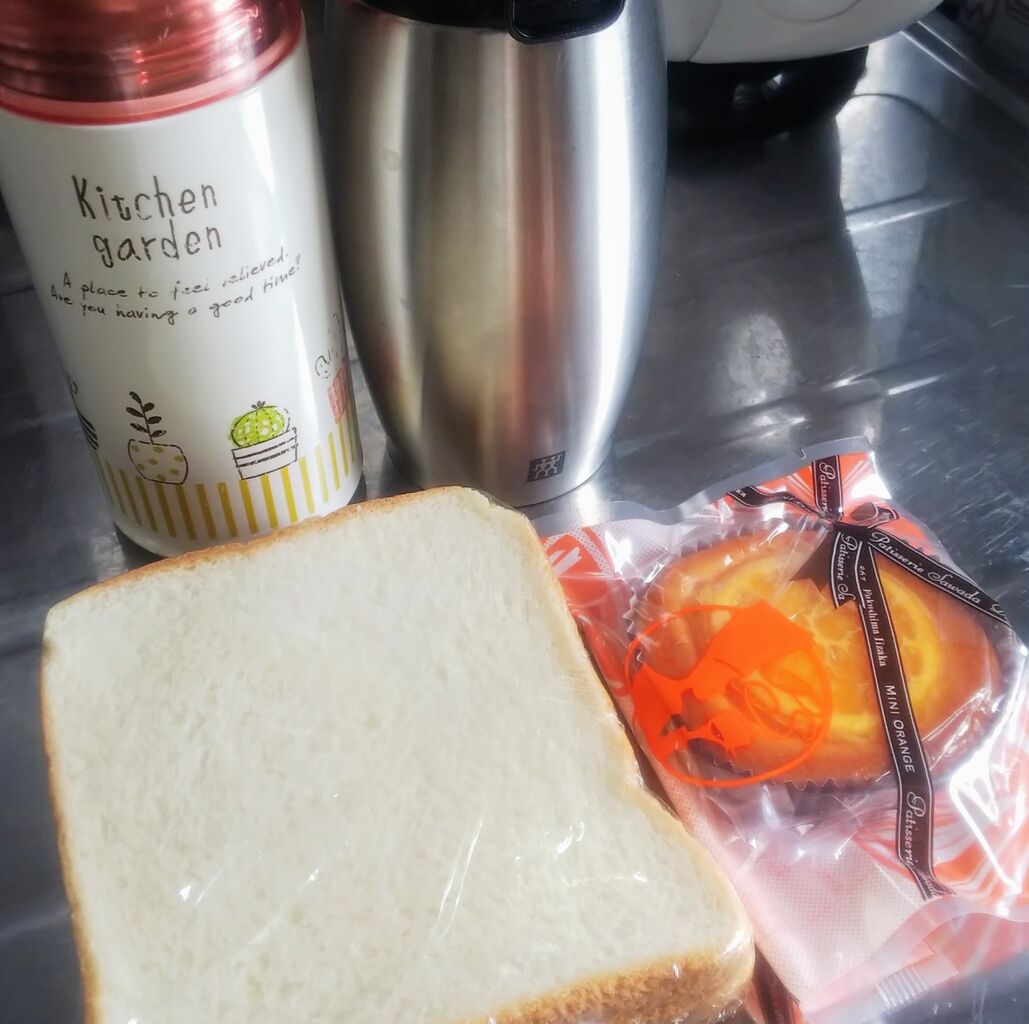 お弁当を作る元気が出なくて、手抜きサンドイッチ。ハムとスライスチーズを挟んであります。