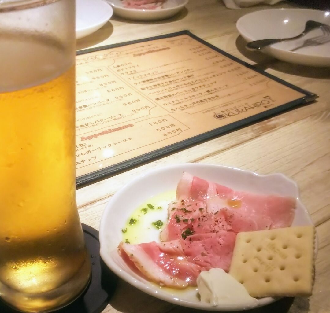 お通しは生ハムとクリームチーズクラッカー。