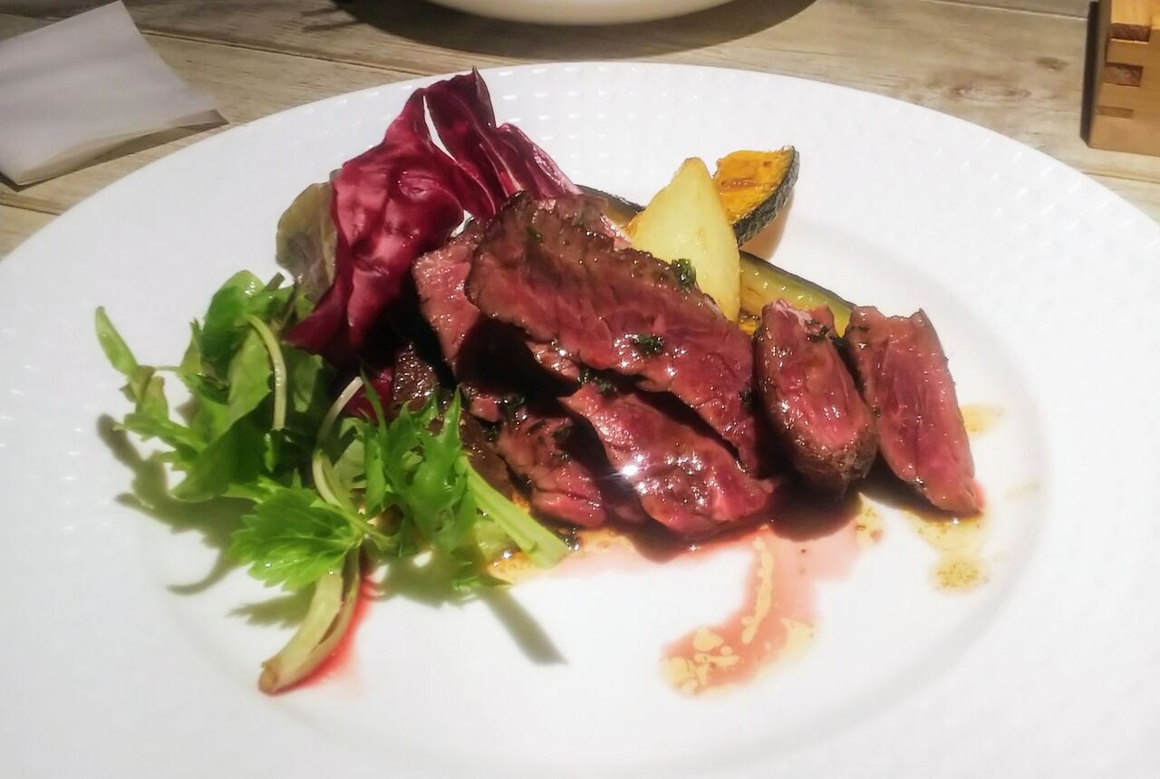 メインディッシュはハラミステーキです。