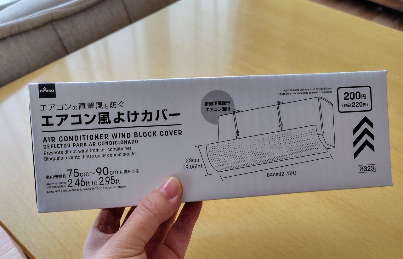 これで、風を上に逃がしてくれるので、直接当たらずお部屋は冷える。200円で快適が手に入りました。