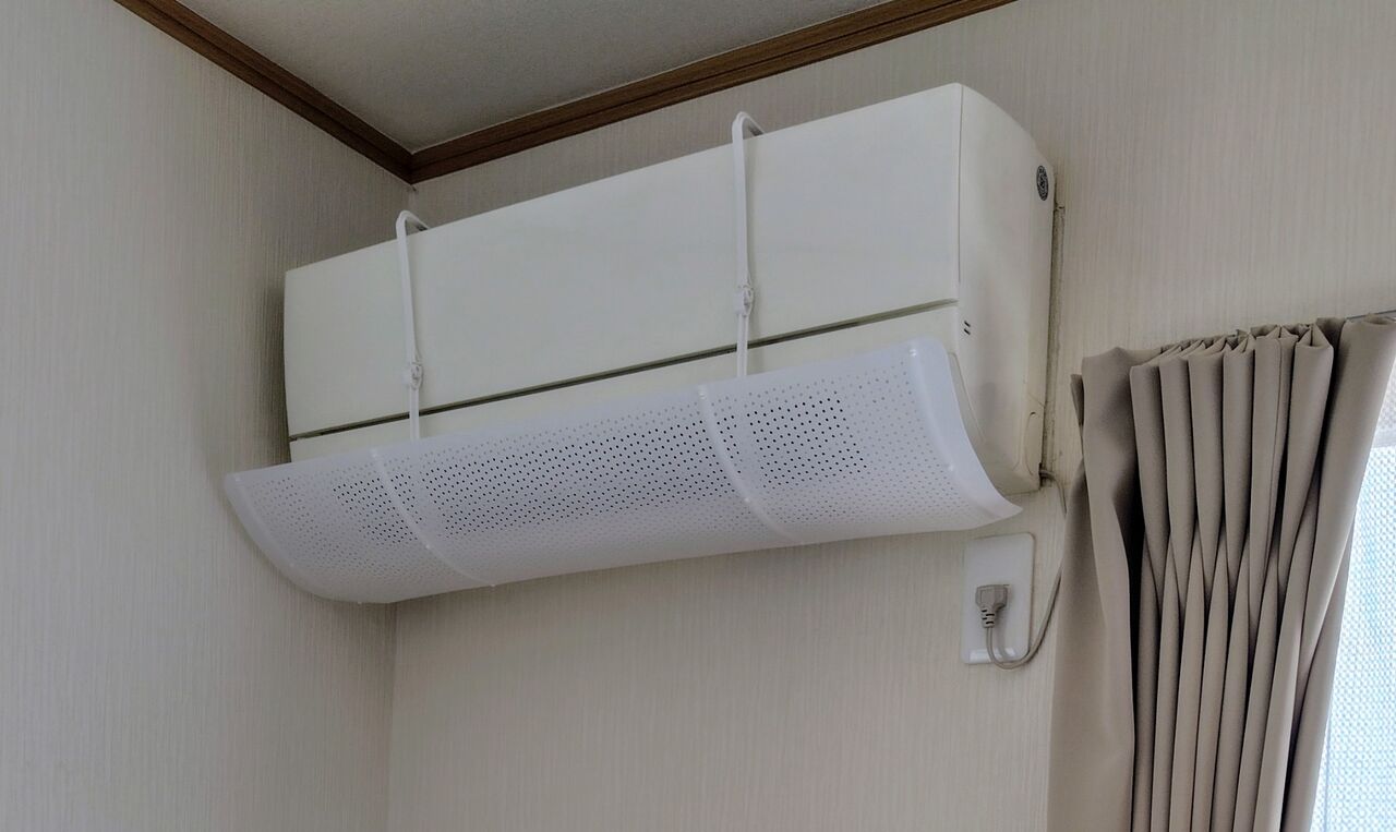 これで、風を上に逃がしてくれるので、直接当たらずお部屋は冷える。